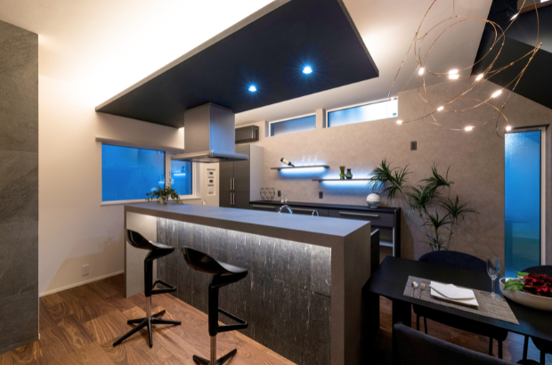 壁面の凹凸や素材の質感を浮かび上がらせる間接照明は、夜の住まいを美しく魅せます。